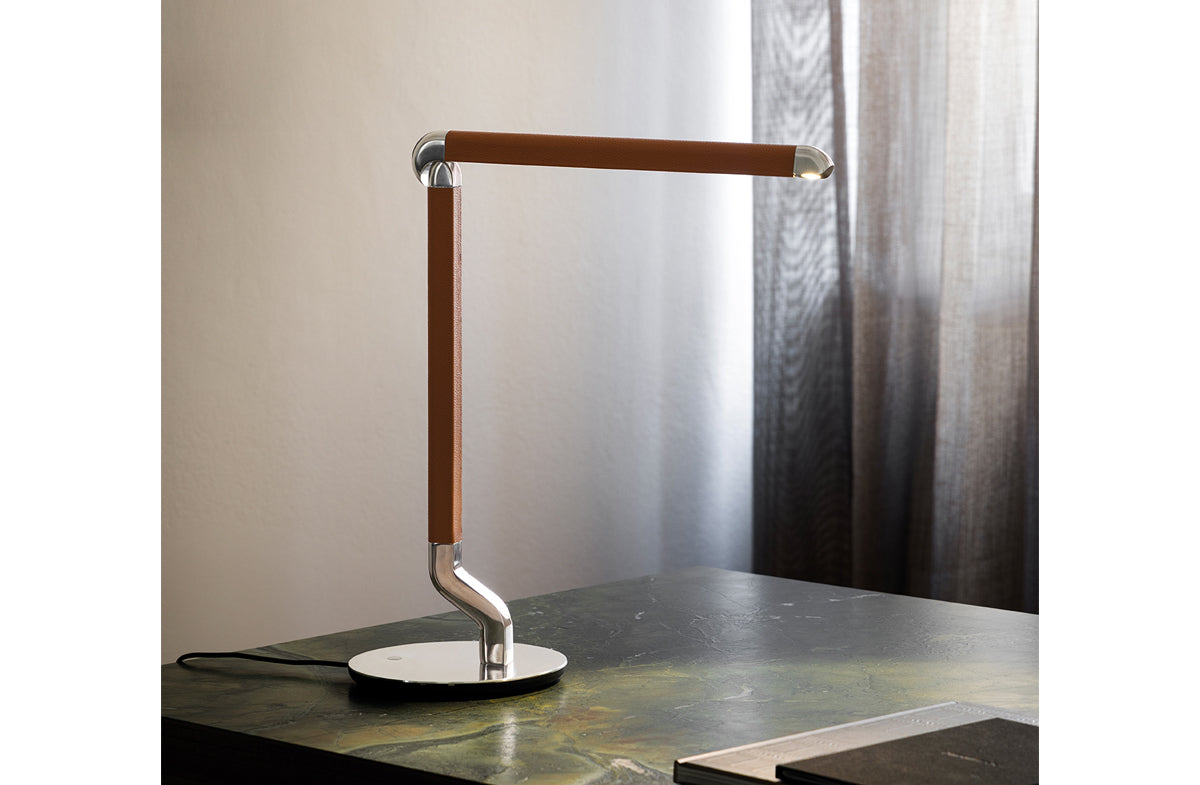 FinishMetal in polished aluminum, or bronze nickel. Leather in cognac, or coffee tone.